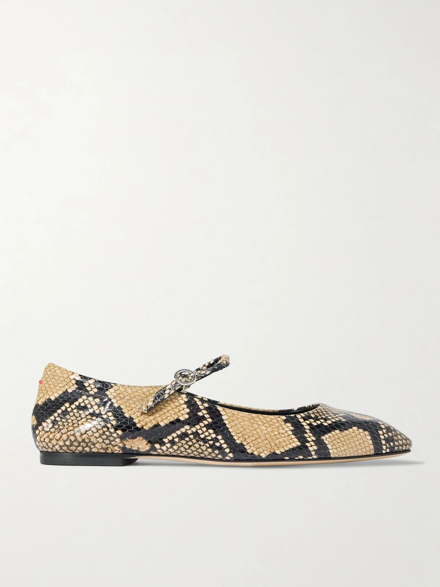 Uma snake-effect leather Mary Jane ballet flats Snake print