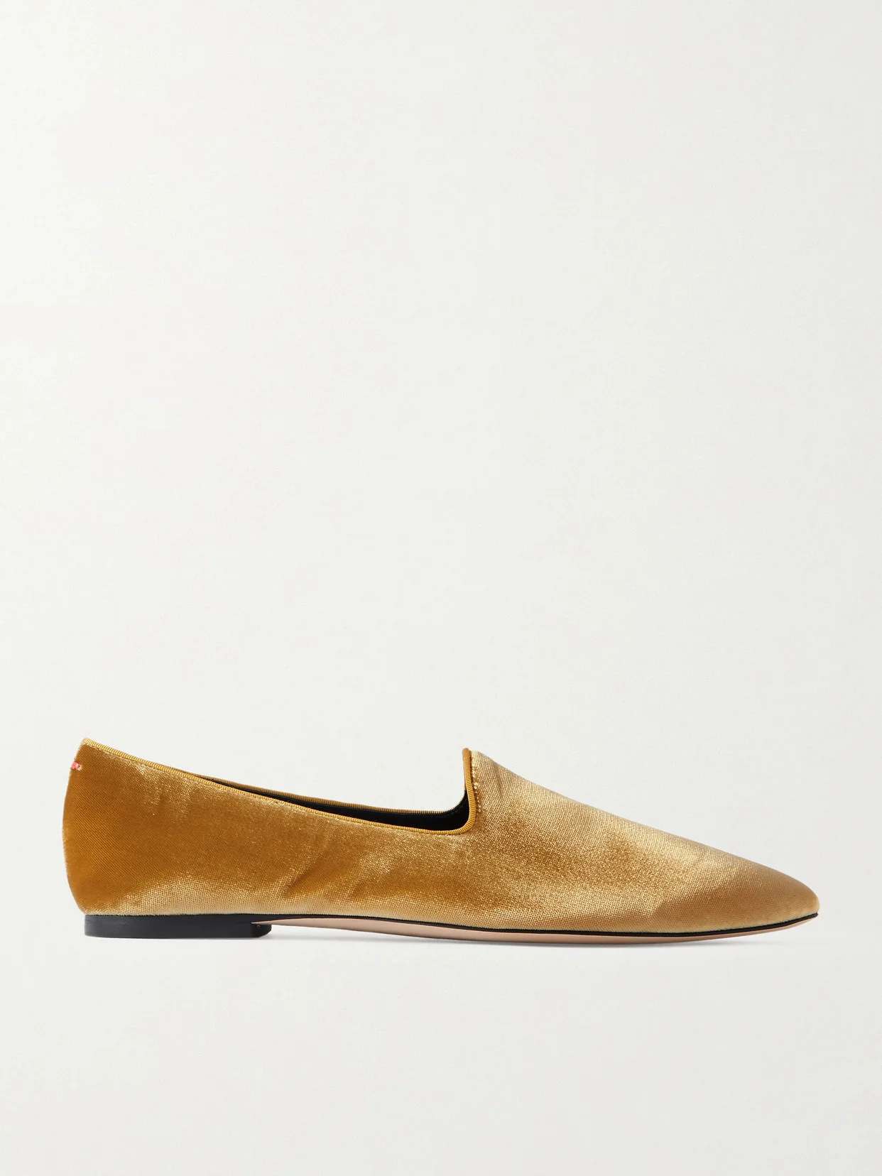Aeyde's 'Vanna' loafers embody the timeless elegance of Venetian slippers. They've been made in Italy from soft velvet with almond-shaped toes and comfortable cushioned insoles. Highlight the stitches at the back with red socks.
