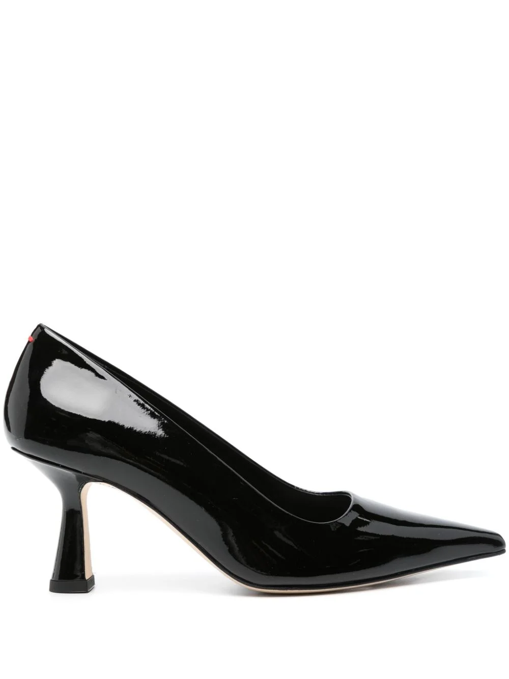 Zandra 75mm leather pumps Highlights - Black - Calf leather - Patent finish - Pointed toe - Branded leather insole - 75mm mid sculpted heel - Leather outsole - Slip-on style Made in Italy Composition Lining: Calf Leather 100% Sole: Rubber 100%, Calf Leather 100% Outer: Patent Leather 100% SIZE & FIT Measurement HEEL 2.75 in(7 cm)