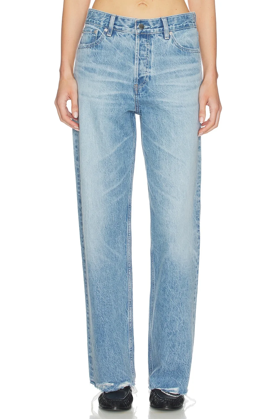 - Midweight rigid denim textile - Imported - Machine wash recommended - Button fly closure.5-pocket styling - Midweight rigid denim with frayed hem.19" at the leg opening - Revolve Style No. AG-WJ1389 - Manufacturer Style No. SGM1H01TD