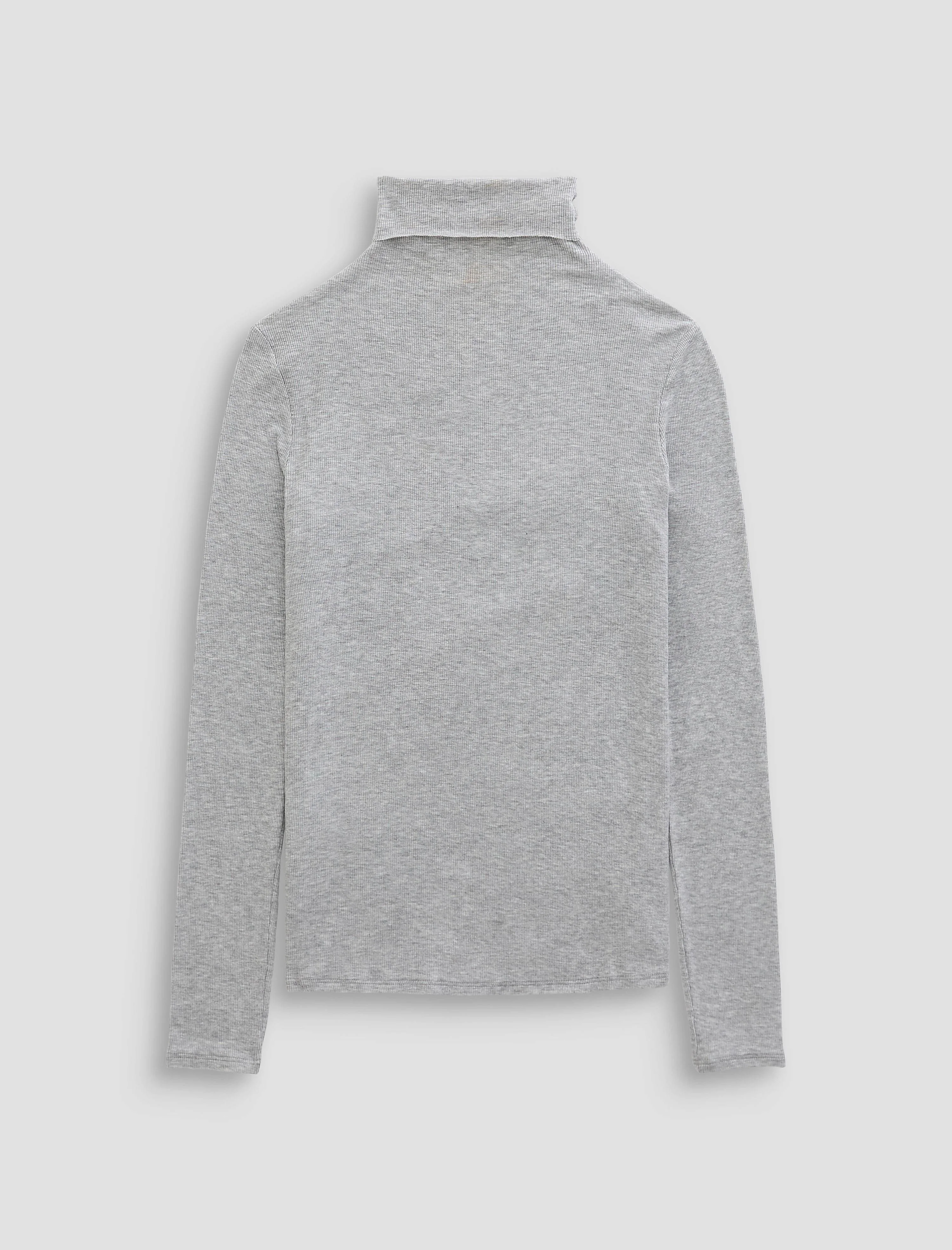 Slim Rib Knit The Chels Turtleneck has a slim, form-fitting silhouette with a foldover neck and extended sleeves. Done in heather grey, this women’s top is crafted from a 2x1 Lyocell Rib knit with a luxuriously comfortable feel that's soft against the skin. DETAILS & FIT Model is wearing size S. - Body Length: 25" - Chest Width: 32" - Sleeve Length: 25" FABRIC & CARE 2x1 Lyocell Rib, 96% Lyocell, 4% Spandex/Elastane