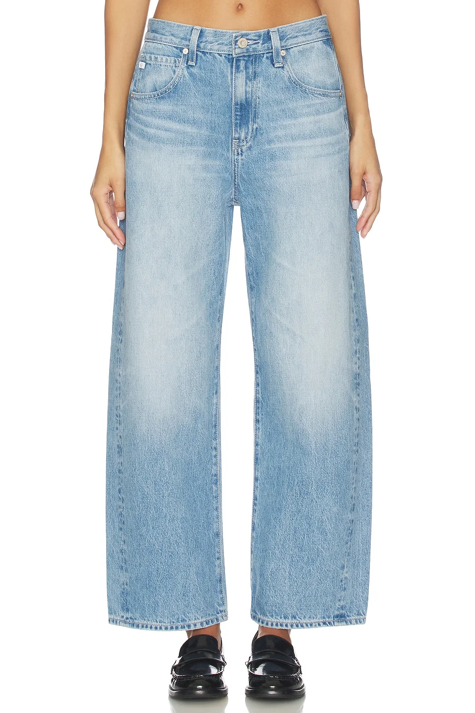 - 100% cotton - Made in Vietnam - Machine wash cold - Zip fly with button closure.5-pocket styling - Barrel-leg style.19" at leg opening - Revolve Style No. AG-WJ1379 - Manufacturer Style No. SGM1F28BT