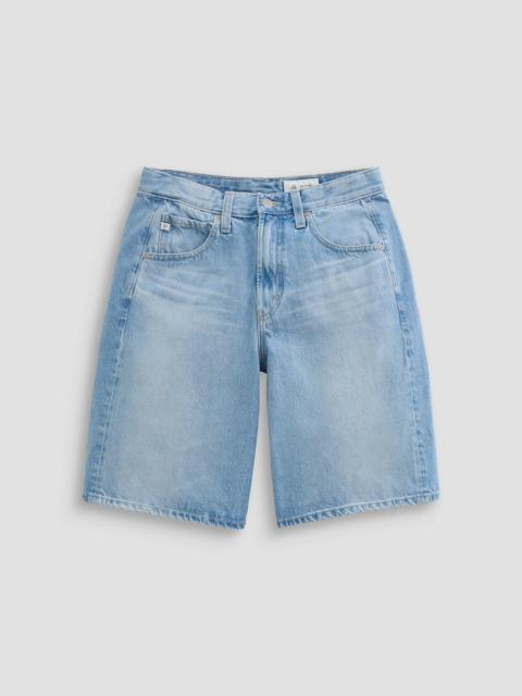 High-Rise Bermuda Our Hattie Short in Sunfaded Destruction is a high-rise Bermuda short with a relaxed fit. Crafted in a light wash and finished with raw hems, it delivers an effortless, sunworn look with a casual edge. DETAILS & FIT Model is wearing size 26. - Front Rise: 11 1/2" - Bottom Opening: 23 3/4" - Inseam: 10 1/2" FABRIC & CARE Sioux Rigid Denim, 13 oz. 100% Cotton