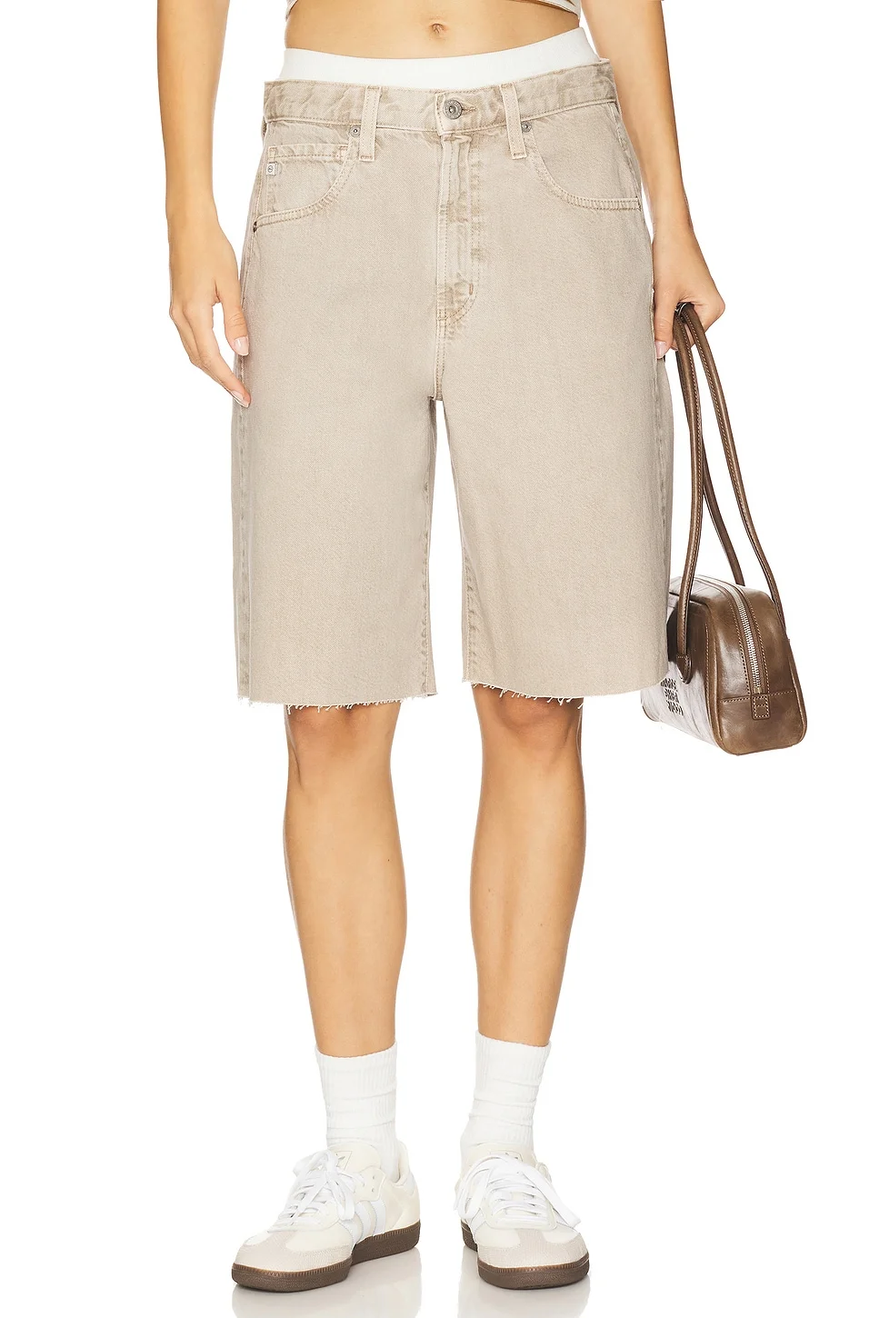 - 100% cotton - Machine wash cold - Zip fly and button closure.5-pocket design - Contrast logo patch at back waistline - Midweight rigid denim fabric raw-cut frayed hem - Shorts measure approx 21" in length - Revolve Style No. AG-WF64 - Manufacturer Style No. FPD1G04VN