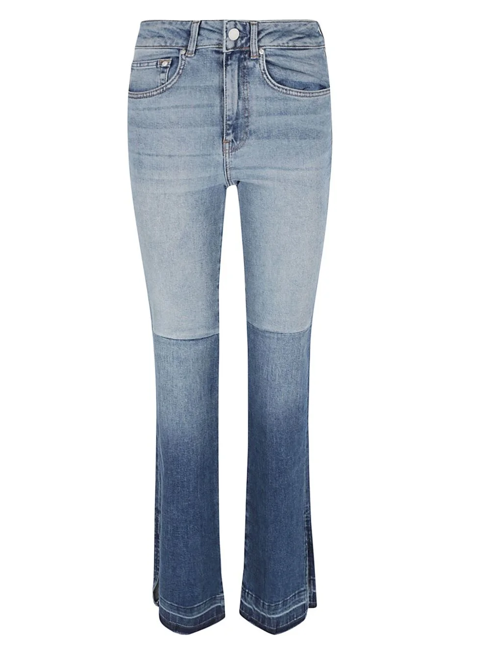 logo-patch two-tone straight-leg jeans Highlights - Blue - Cotton blend - Denim - Two-tone design - Logo patch to the rear - Front button and zip fastening - Belt loops - Classic five pockets - Straight leg Imported Composition Cotton 98%, Elastane 2% SIZE & FIT Measurement FRONT RISE 11.02 in(28 cm) INSIDE LEG 33.46 in(85 cm) HIPS 35.43 in(90 cm) WAIST 25.98 in(66 cm) Washing instructions Read Manufacturer Guidelines