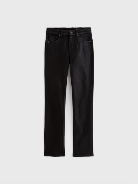 Coated Denim Mid-Rise Slim Straight The Mari mid-rise straight leg jean for women features a leatherette-coated deep red hue. Mari offers a flattering mid-rise waist and fits easy around the hips, finished with a straight leg and subtle slim leg opening. This women’s straight jean is designed in 8.7 oz. Hyper Soft Bull Denim, an exclusive AG Cloud Soft Denim™ fabric. This special left-hand twill allows the yarns to gently relax and untwist for a luxe, supple feel. It's designed to get even softer the more you wear it. There's dual-elastic stretch built in for extra comfort and powerful recovery. DETAILS & FIT Model is wearing size 26. - Front Rise: 9 3/4" - Knee Opening: 14" - Bottom Opening: 13" - Inseam: 29" FABRIC & CARE AG Cloud Soft Denim™, Hyper Soft Bull Denim, 8.7 Oz. 93% Cotton, 6% Polyester, 1% Elastane