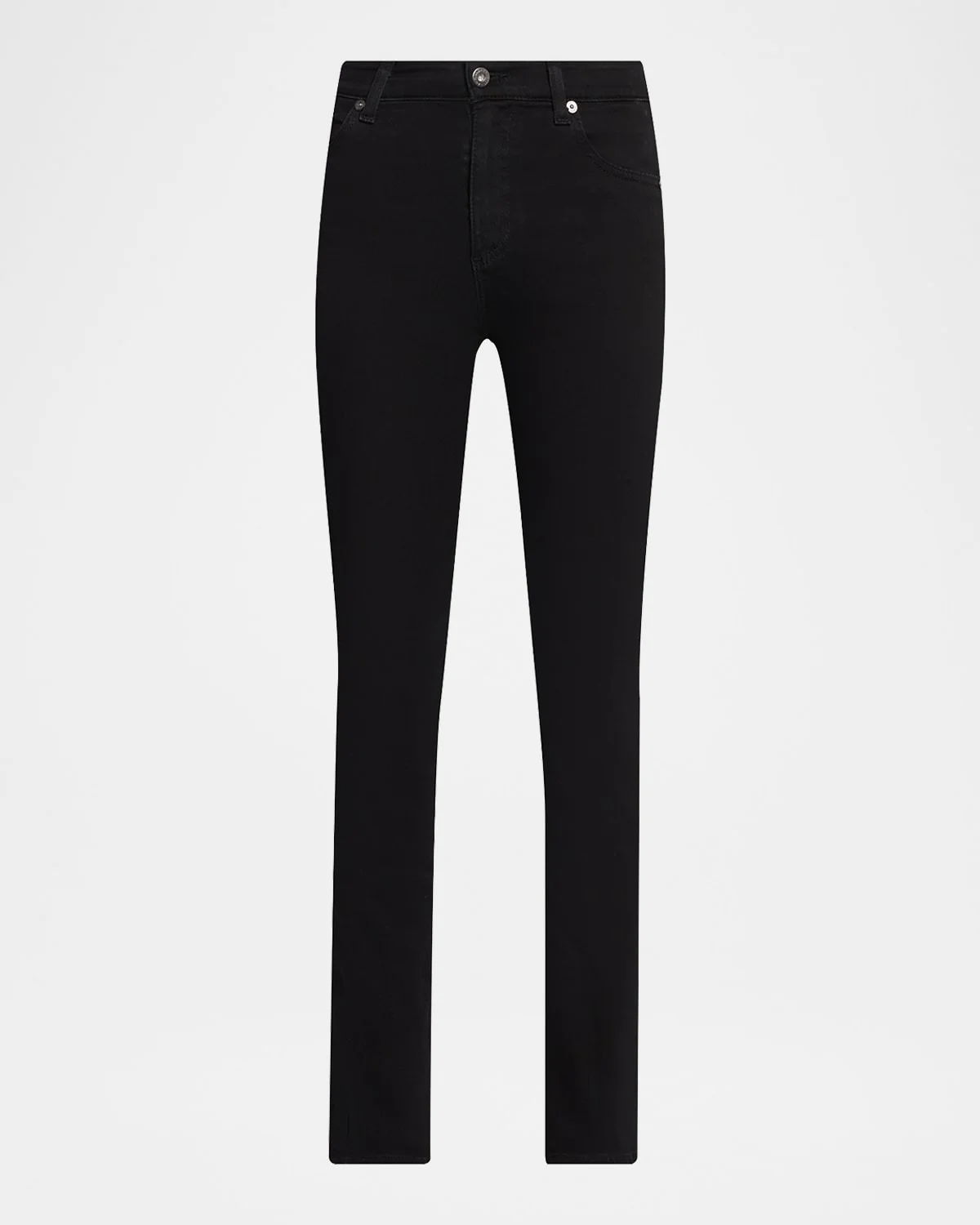 AG Jeans "Mari" skinny jeans in black stretch-denim & nbsp; Approx. 9.8" rise; 29" inseam High rise Five-pocket style Slim fit Ankle length Button/zip fly; belt loops & nbsp; Cotton/polyester/elastane Imported Model is 5 & apos;10"/177cm.