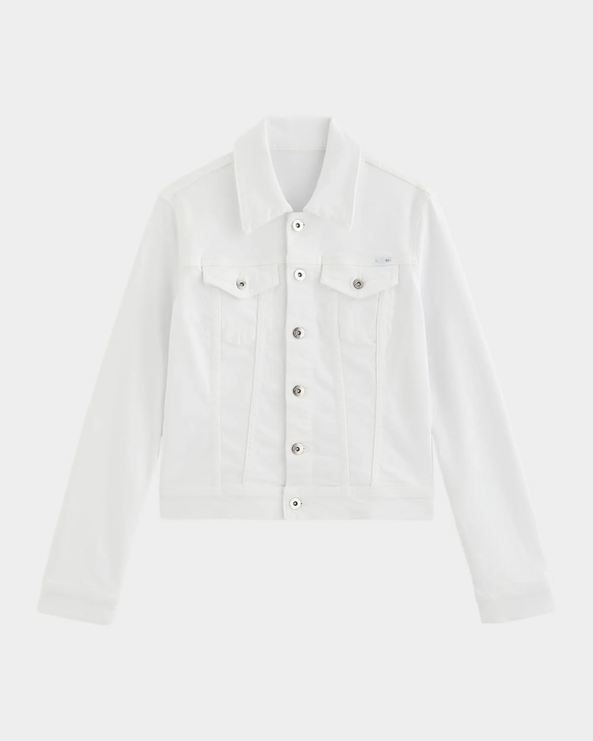 AG Jeans "Robyn" white denim jacket Point collar & nbsp; Long sleeves with button cuffs Dual chest pockets Classic fit Hem sits at the hip Button-front & nbsp; Cotton/polyester/elastane Imported