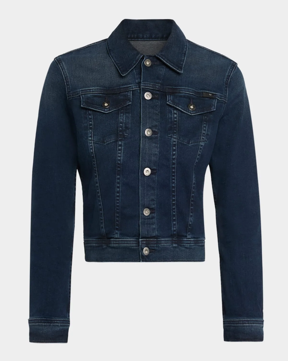 AG "Robyn" denim jacket.Spread collar; button front.Long sleeves; button cuffs.Chest flap pockets.Slim fit.Cotton/polyurethane.Made in Mexico.