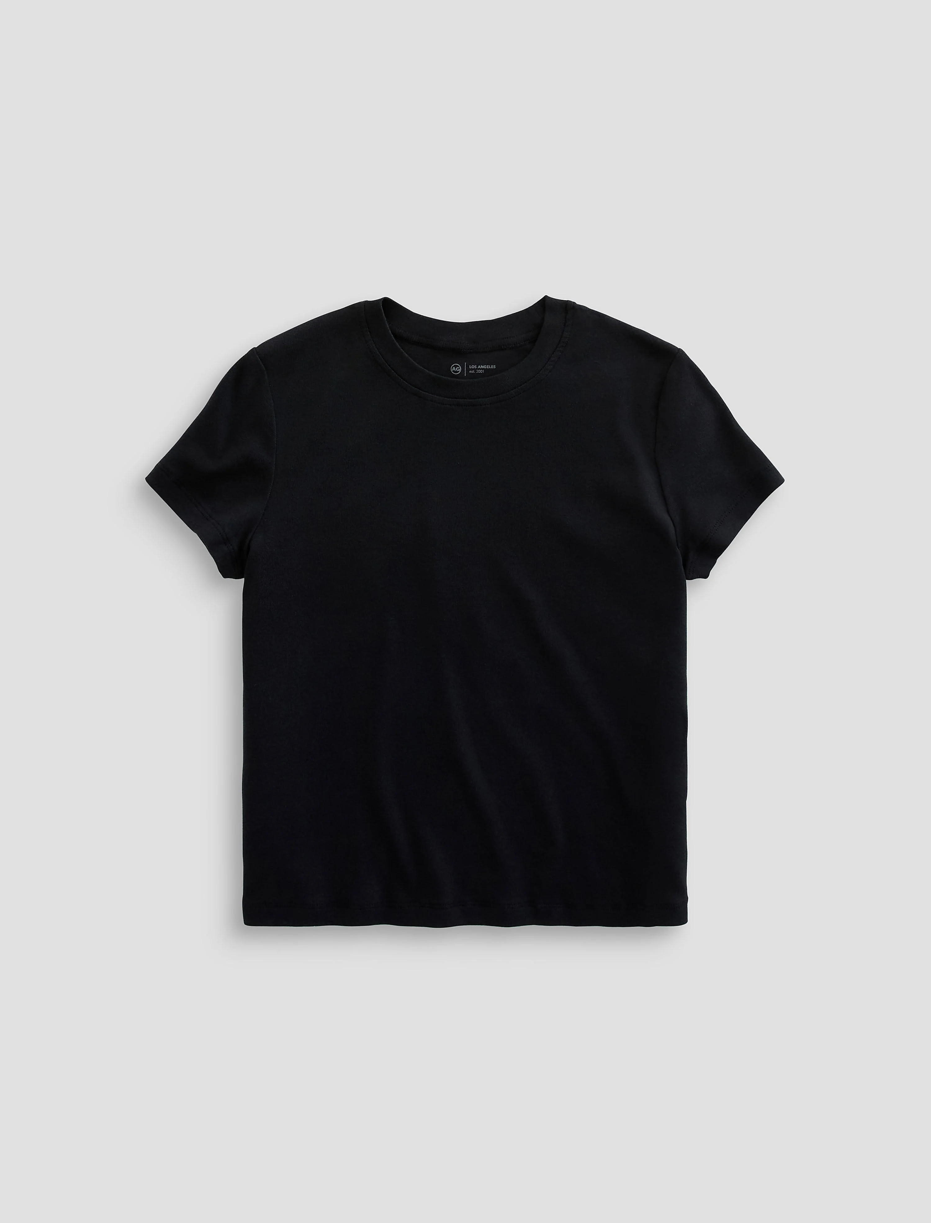 90's Vintage Crop Tee The Sadie Crew is a throwback essential T-shirt with a modern feel. Inspired by vintage '90s crop tees, it features a slim, slightly shrunken fit that flatters and layers with ease. Made from soft ribbed fabric, it offers subtle texture and stretch for all-day comfort. Finished with short sleeves, this tee is a go-to for effortless, everyday style. DETAILS & FIT Model is wearing size S. - Body Length: 20 1/4" - Sleeve Length: 5 1/4" - Chest Width: 33 3/4" FABRIC & CARE 1X1 Baby Rib, 60% Cotton, 40% Modal