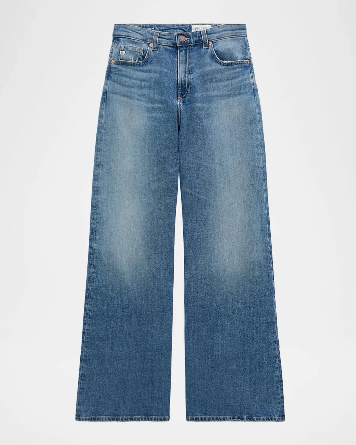 AG Jeans "Saige" jeans crafted from stretch denim & nbsp; Approx. 10.3" rise; 31" inseam Mid-rise; sits high on the hip Five-pocket style Wide legs & nbsp; Full length Button/zip fly; belt loops Cotton/elastane Machine wash cold Imported