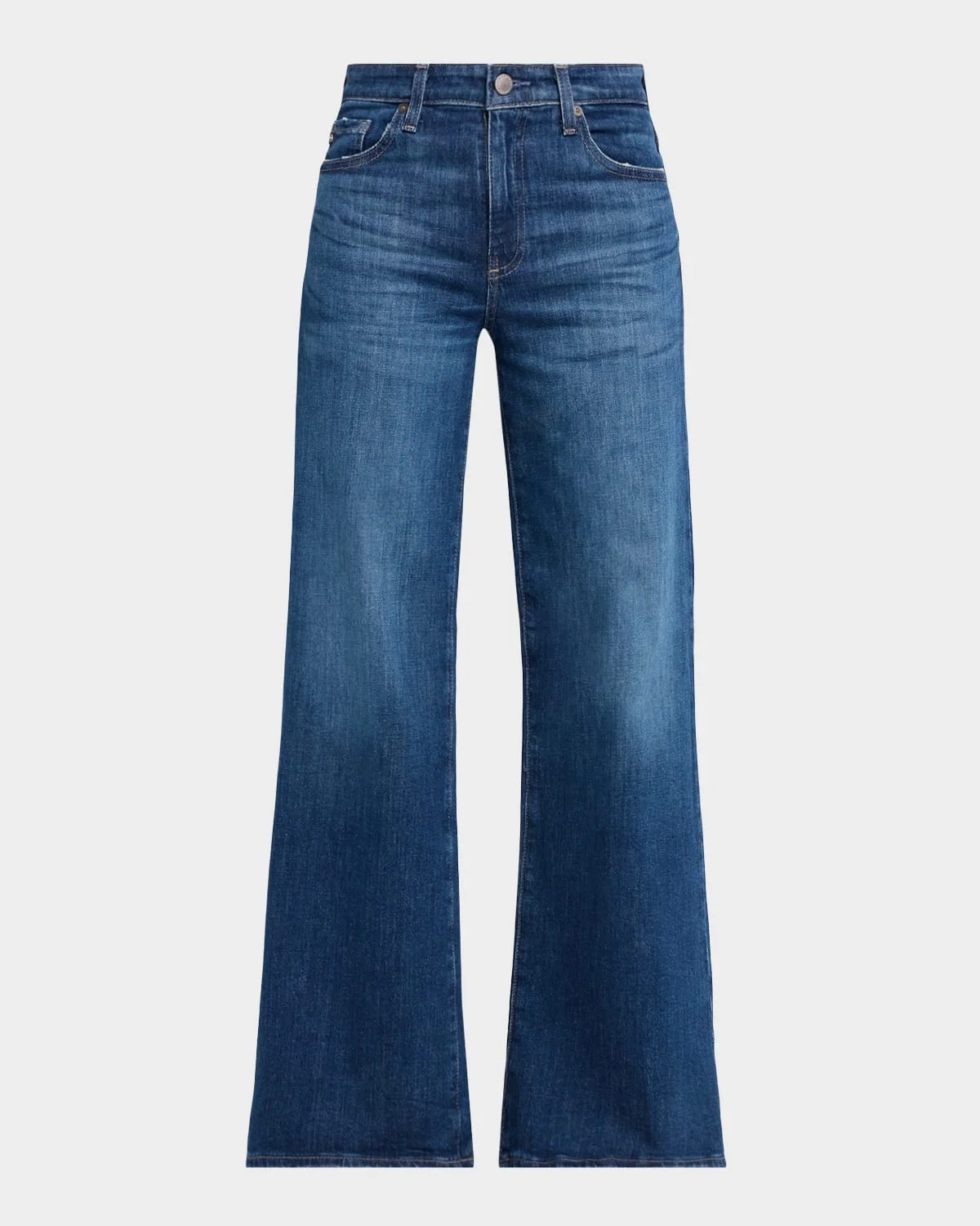 AG Jeans "Saige" jeans crafted from stretch denim & nbsp; Approx. 10.3" rise; 31" inseam Mid-rise; sits high on the hip Five-pocket style Wide legs & nbsp; Full length Button/zip fly; belt loops Cotton/elastane Machine wash cold Imported