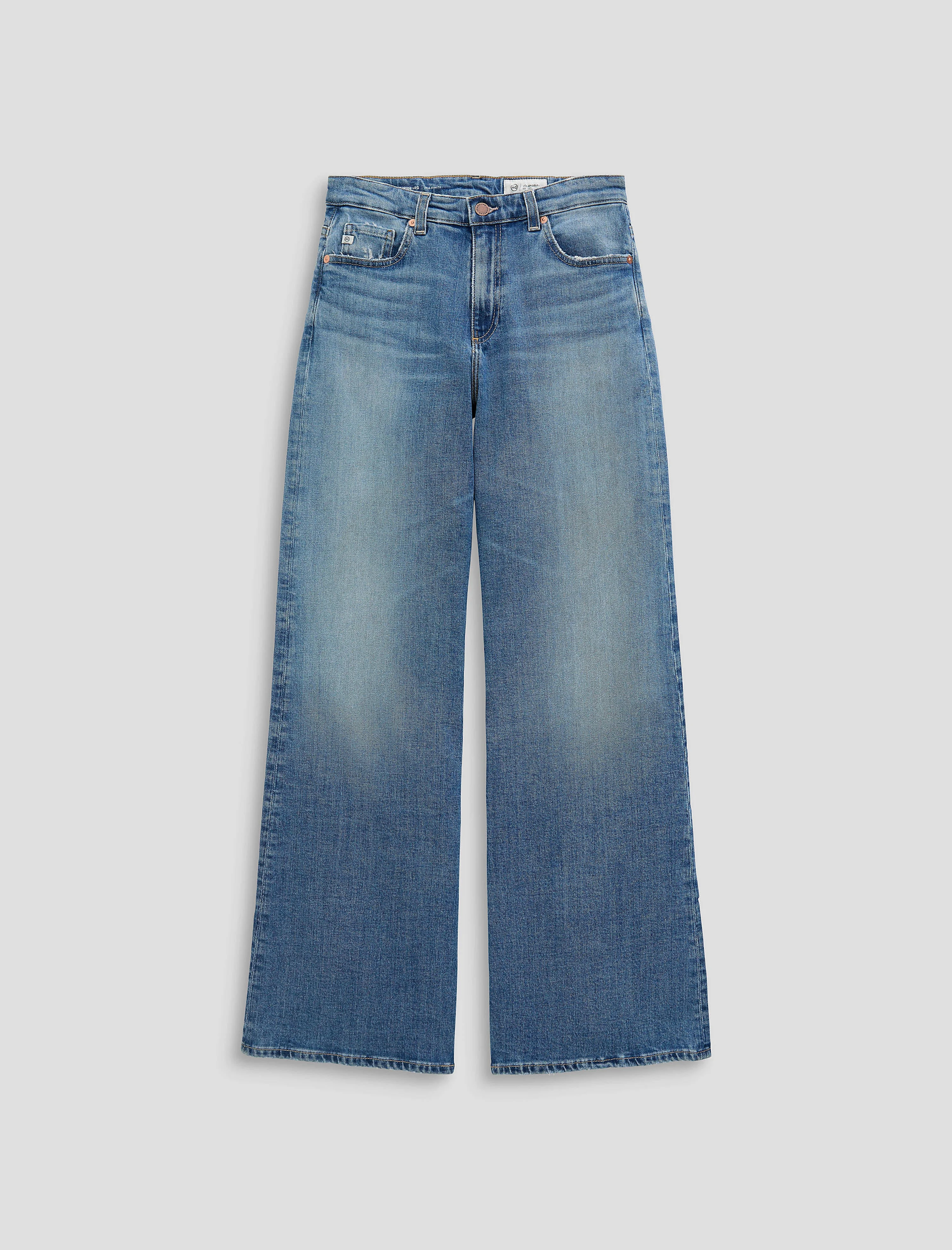 Mid-Rise Fit Saige Wide Leg is crafted from Comfort Stretch Journey Denim. This mid-rise jean is adored for its easy, relaxed silhouette and effortlessly stylish look. Designed in our medium blue wash, American West, and finished with highs and lows, whiskering, fading, light distressing on the coin pocket, and worn-down trim for a vintage touch. DETAILS & FIT Model is wearing a size 26. - Front Rise: 10 1/4" - Knee Opening: 20 1/4" - Bottom Opening: 24" - Inseam: 31" FABRIC & CARE Journey Denim, 11 Oz. 98% Cotton, 2% Elastane