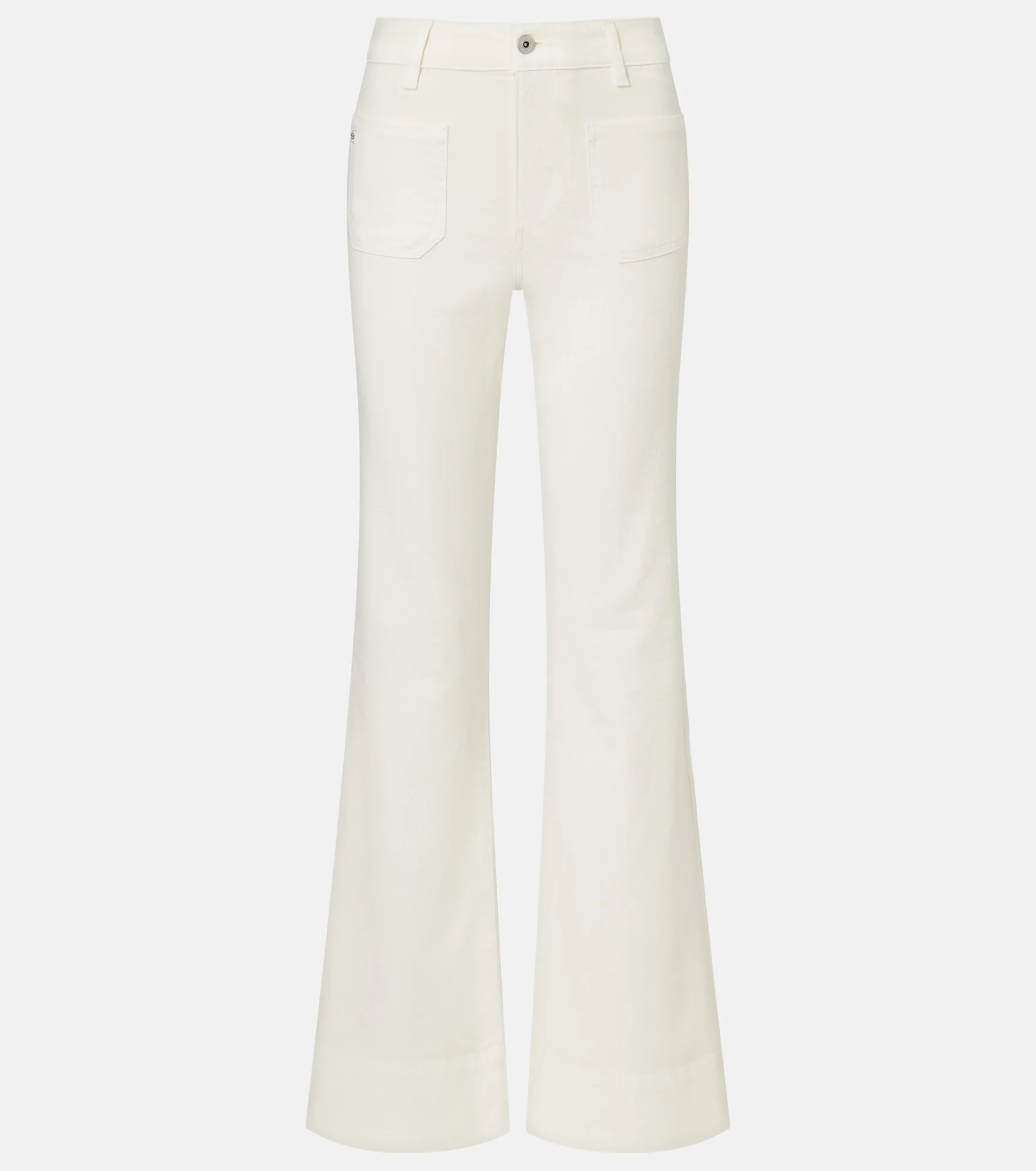 Launched in 2000, AG Jeans brings a modern slant to classic denim styles. The Vicky jeans are cut to flatter the body with their high-rise, flared silhouette, a nod to vintage-inspired design. Product Details - Material: 80% cotton, 15% lyocell, 3% elastomultiester, 2% elastane - Care instructions: machine wash at 30 degrees - Made in Tunisia - Color: white - Designer color name: Marshmallow - Closure: zipper fly, button fastening - Pockets: patch pockets, back pockets - Belt loops - Item number: P01153335 Size & Fit - True to size - Slightly stretchy fabric - Flared - High-rise - The model seen in the picture is 178cm-5'10" and wearing a size 26