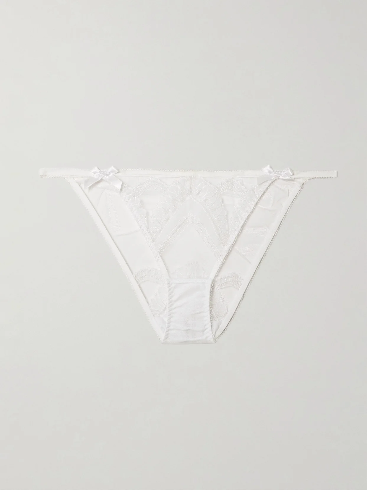 Alysia Bow-detailed Embroidered Tulle Briefs