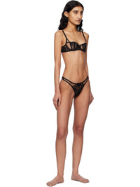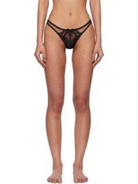 Sheer nylon mesh and nylon lace thong. Picot trim throughout. · Paneled construction · Bow accent at elasticized waistband · Partial cotton jersey lining Supplier color: Black Body: 100% polyamide. Lining: 100% cotton. Made in Morocco 251281F081016