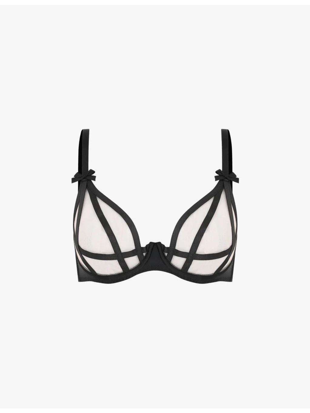 PRODUCT DETAILS - Agent Provocateur stretch-woven bra - 86% polyester, 14% elastane - Exposed hook-and-eye fastening at back - Elastic strapping and boning at sides, open strap design, adjustable fastening - Hand wash - True to size - Lightweight, slight stretch