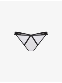 PRODUCT DETAILS - Agent Provocateur woven briefs - 100% polyamide - Slips on - Open elastic strapping detailing, bow embellishment at front, lined gusset, minimal coverage - Hand wash - True to size - Midweight, non-stretch
