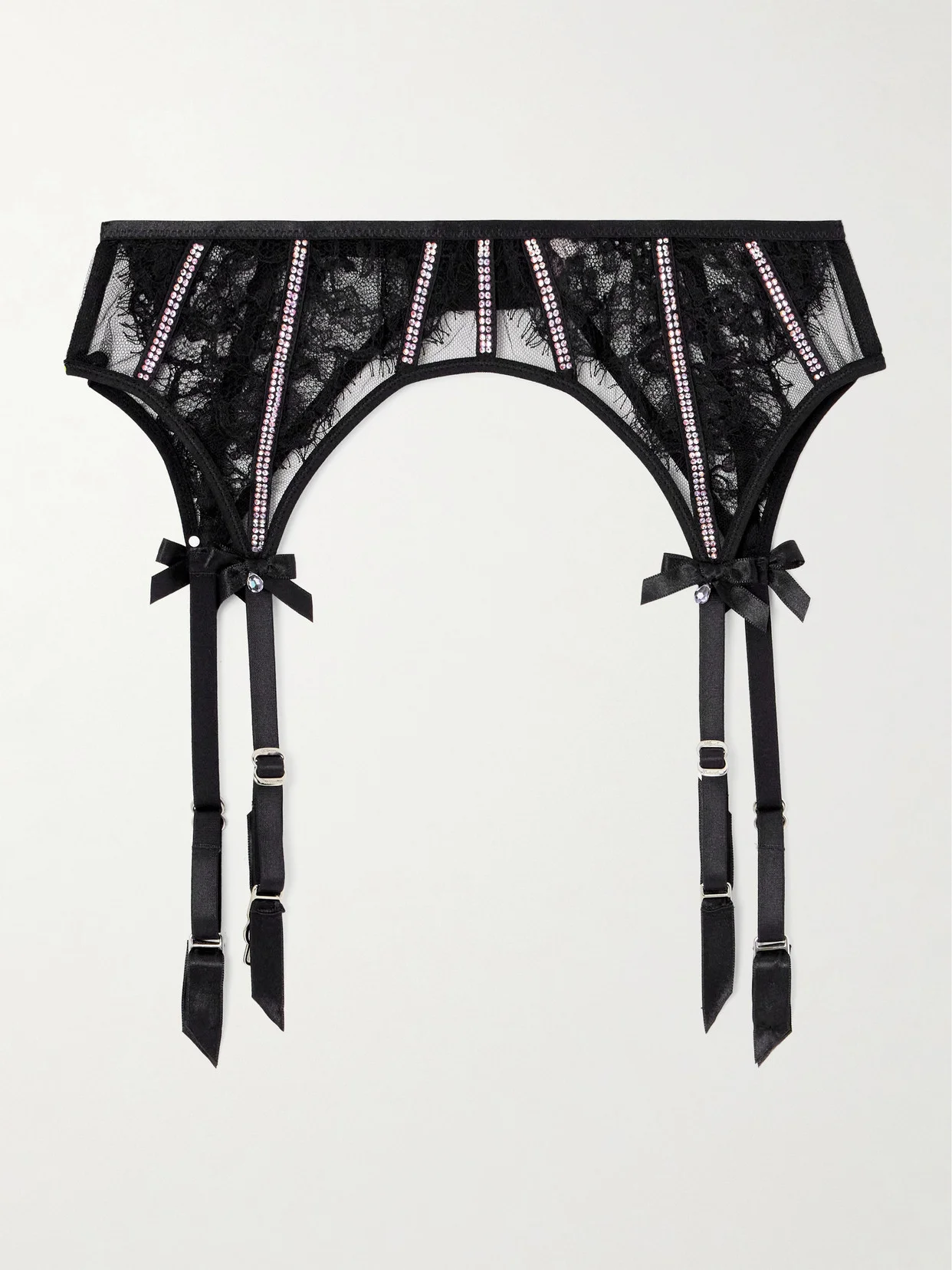 Caitriona Satin-trimmed Crystal-embellished Lace Suspender Belt