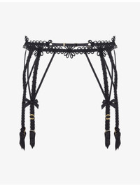 PRODUCT DETAILS - Agent Provocateur suspenders - 76% polyamide, 24% elastane - Hook fastening - Rouleaux ribbon strapping, swirl embroidered, adjustable swan hook fastening - Hand wash - Lightweight, non-stretch Ref: R04569212