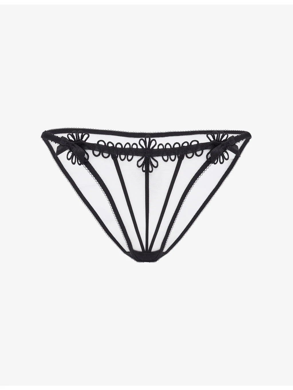 PRODUCT DETAILS - Agent Provocateur tulle briefs - 100% polyamide; gusset lining 100% cotton - Low rise, rouleaux ribbon strapping, swirl embroidered, sheer tulle - Hand wash - True to size - Lightweight, non-stretch - For hygiene reasons, we are unable to exchange or refund this product, unless faulty. Ref: R04569210