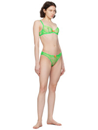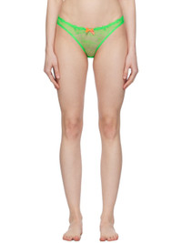 Sheer nylon lace briefs. · Elasticized scalloped edges throughout · Bow accent at front · Partially lined Supplier color: Green/Neon Body: 100% polyamide. Lining: 100% cotton. Made in Morocco 241281F074011