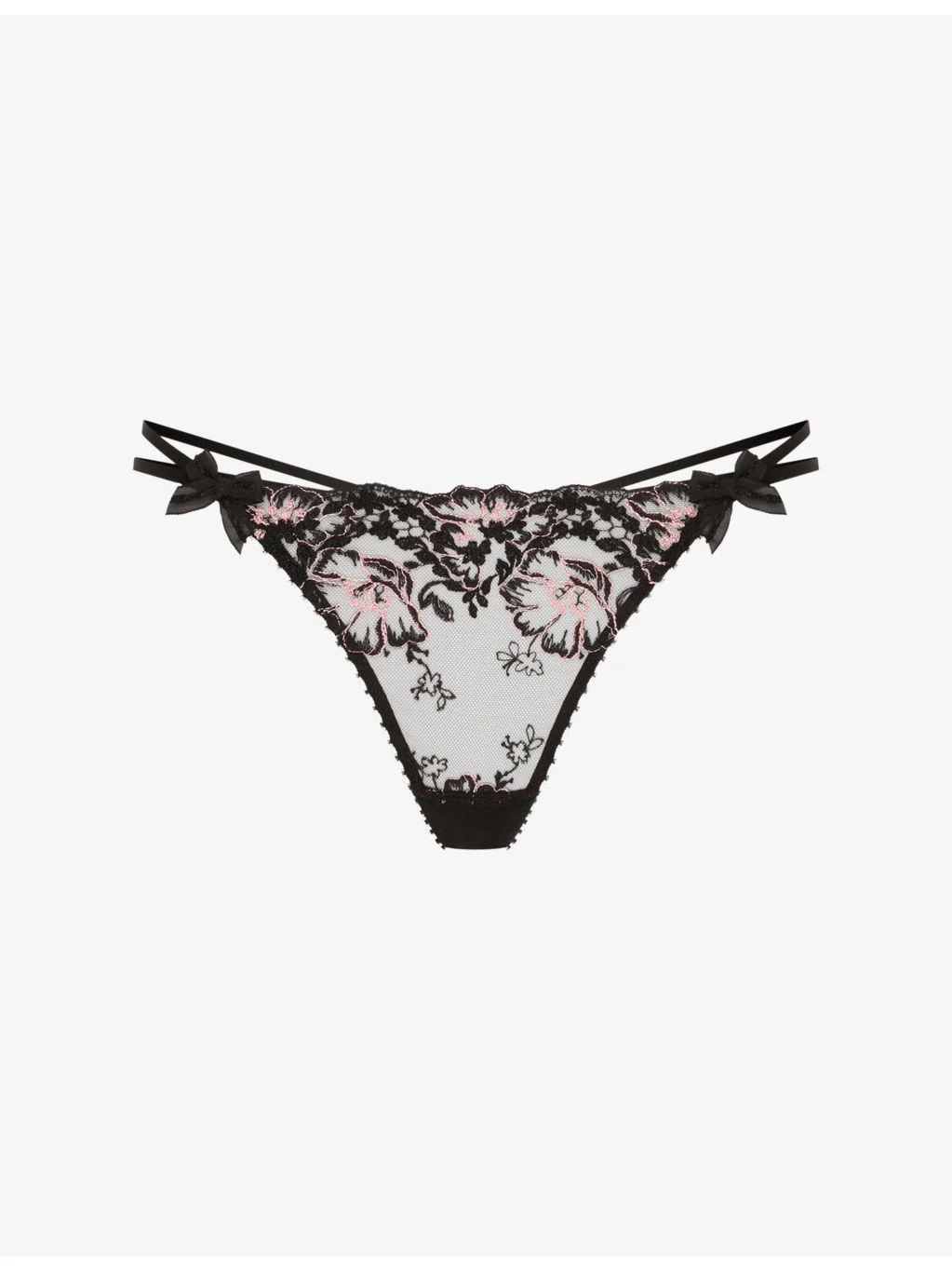 PRODUCT DETAILS - Agent Provocateur lace thong - 100% polyamide; embroidery 100% polyester; contrast embroidery 66% polyester 34% cotton; gusset lining 100% cotton - Low rise, elasticated waistband, double tanga side straps, sheer floral lace, picot trims, bows to front and back, low rear coverage - Hand wash cold - True to size - Lightweight, slight stretch - For hygiene reasons, we are unable to exchange or refund this product, unless faulty. Ref: R04569207