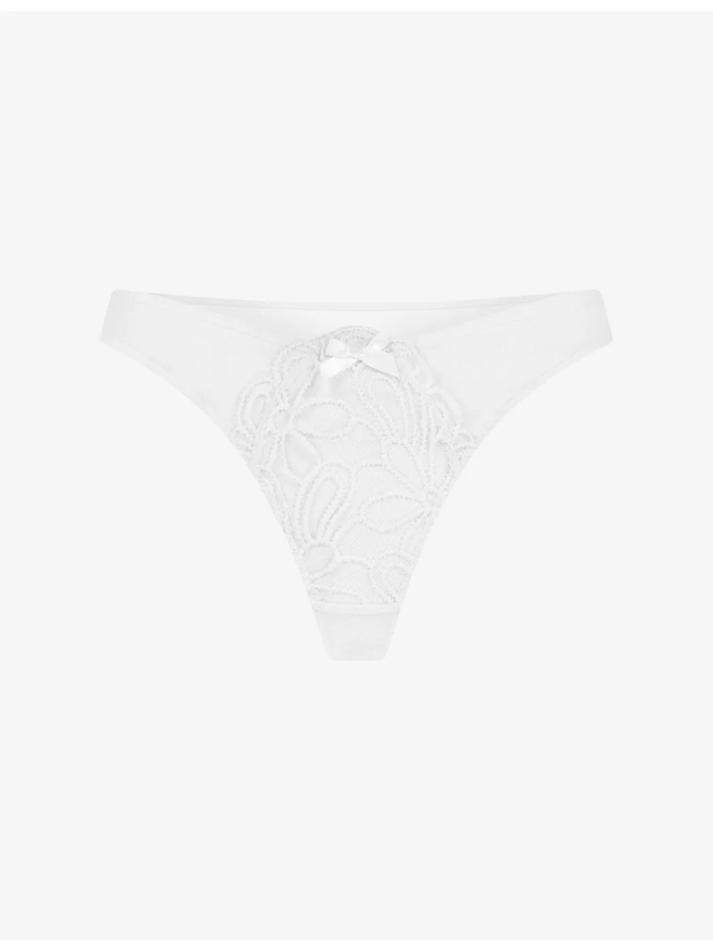 PRODUCT DETAILS - Agent Provocateur mesh thong - 100% polyester - High-rise, embroidery to front, bow embellishment, minimal coverage to back - Hand wash - True to size - Lightweight, slight stretch - For hygiene reasons, we are unable to exchange or refund this product, unless faulty. Ref: R04526333