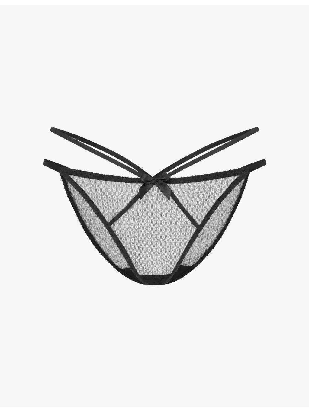 PRODUCT DETAILS - Agent Provocateur mesh briefs - 100% polyester; gusset shell 100% polyamide; gusset lining 100% cotton; elastic band 89% polyamide 11% elastane - Low rise, elasticated waistband, satin strapping, satin bow at front and back, full rear coverage - Hand wash cold - True to size - Lightweight, slight stretch - For hygiene reasons, we are unable to exchange or refund this product if the protective adhesive strip has been removed. Ref: R04561958