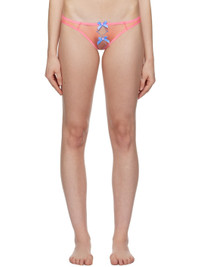 Sheer nylon-blend lace and polyester tulle briefs. Scalloped edges and French seams throughout. · Cutout and bow accents at front and back · Open gusset at bottom · Unlined Supplier color: Baby Body: 100% polyamide. Trim: 100% polyester. Made in Morocco 241281F074010