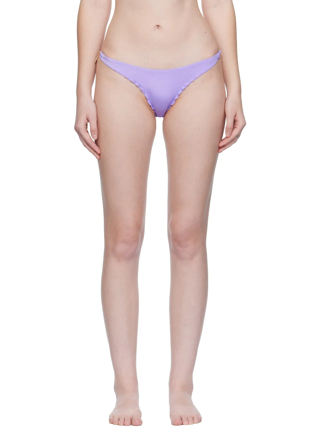 Stretch nylon jersey bikini bottom. · Lettuce edges throughout · Elasticized waistband · Knotted detailing at waist · Detachable charm at side · Ruching and self-tie drawstring at back Supplier color: Lilac 83% polyamide, 17% elastane. Made in Tunisia 252281F105010