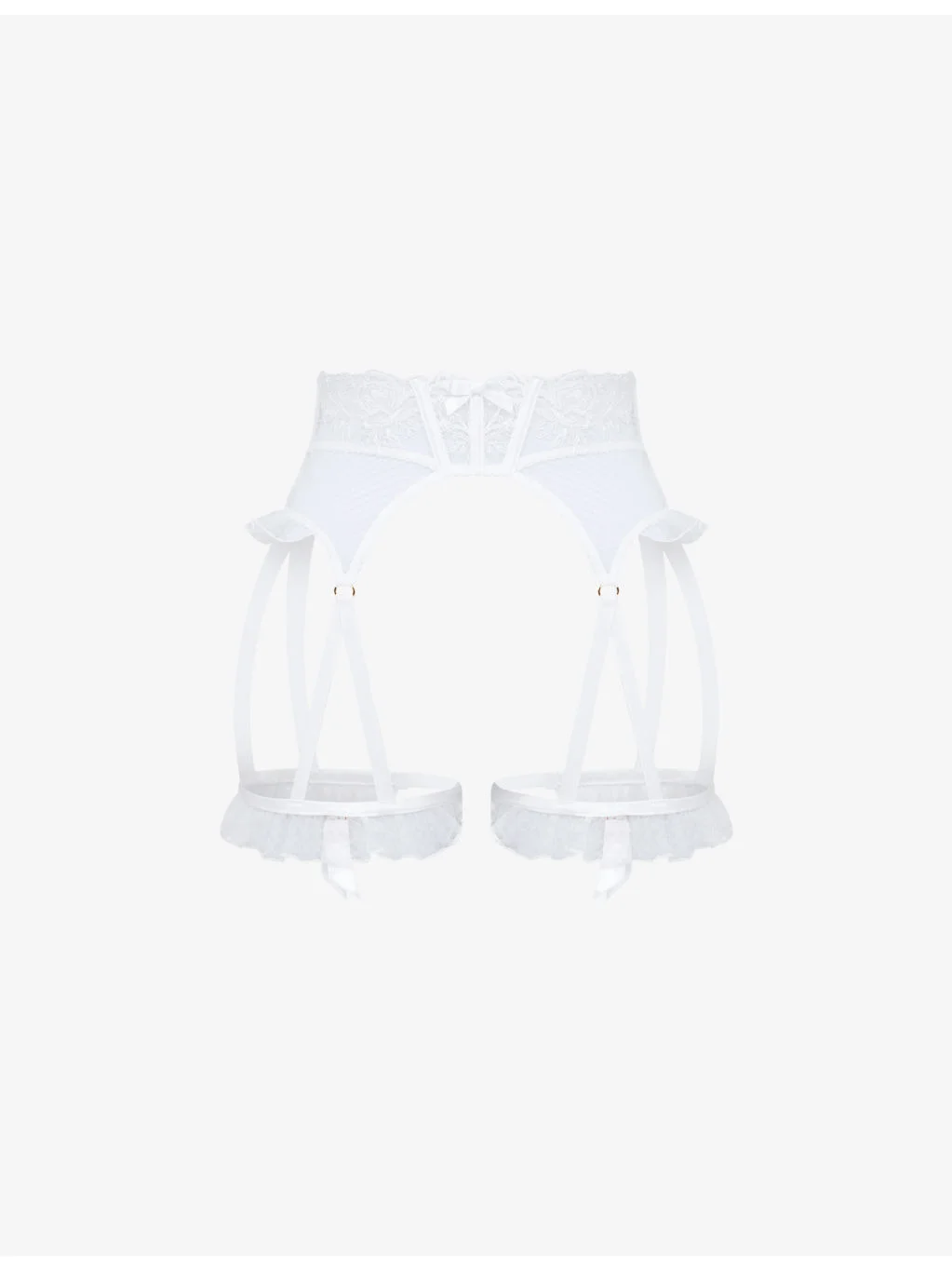 PRODUCT DETAILS - Agent Provocateur woven suspender belt - 100% polyamide - Hook-and-eye fastening - High rise, lace-embroidered trims, bow embellishment - Hand wash cold - True to size - Lightweight, non-stretch Ref: R04379259