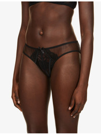 PRODUCT DETAILS - Agent Provocateur mesh and lace briefs - 100% polyamide; lining 100% cotton; trims 100% polyamide - Slips on - Mid-rise, elasticated waistband, satin bows at front and back, semi-sheer mesh panels, all-over lace panels, full-coverage at back, lined gusset - Hand wash - True to size - Model is 5ft 9in / 1.75m and wears a size UK 14 - Lightweight, slight-stretch Ref: 904-10126-109244