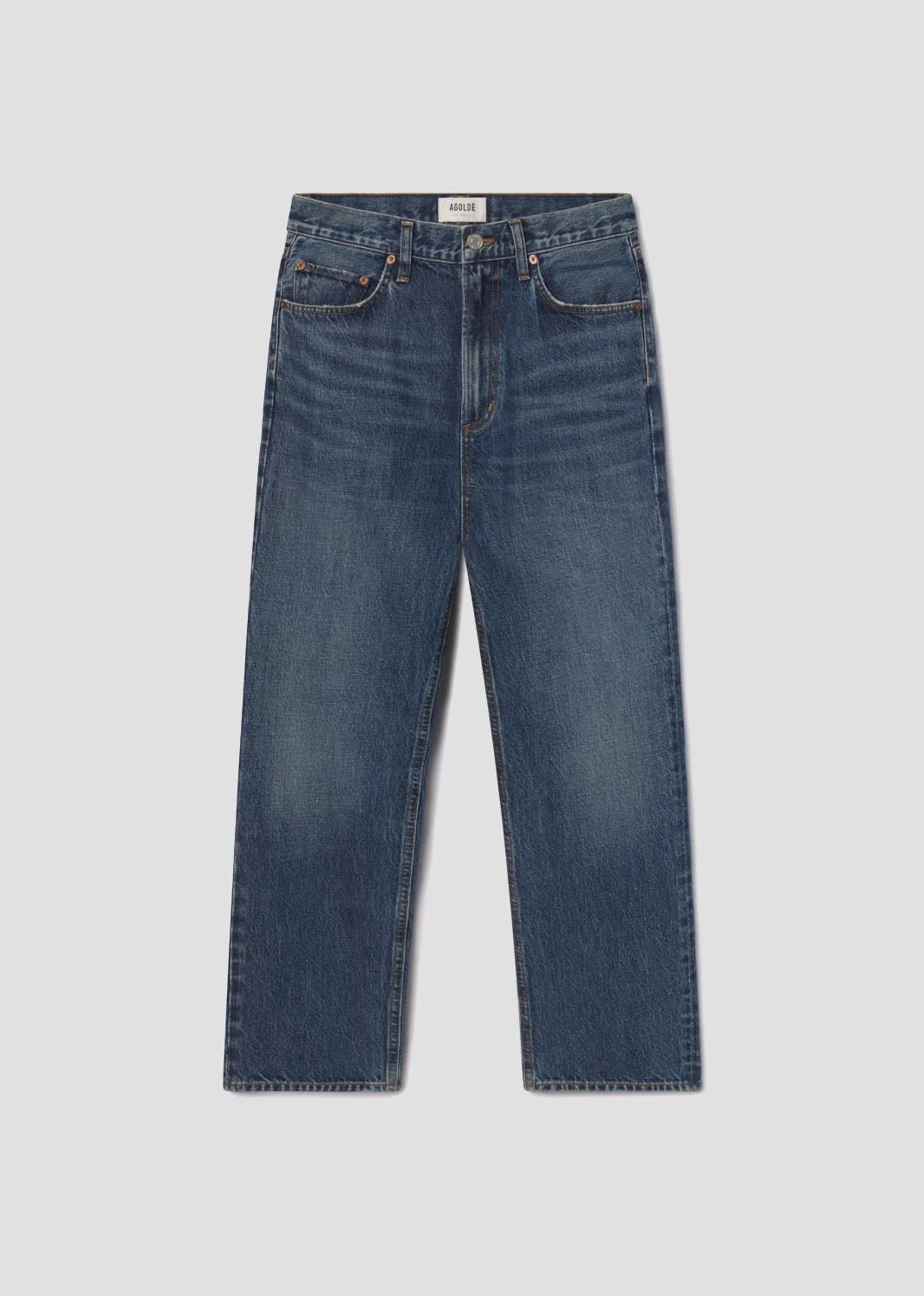 The Valen is a mid-rise vintage straight jean with an ankle-grazing inseam and a flattering square top block. Made from weightless regenerative cotton, these jeans offer a non-stretch fit that maintains structure while providing a soft, lived-in feel. Pair with a simple tee or oversized knit for a cool, effortless look that transitions seamlessly from day to night. This fit is true to size. Looks Like: Dark indigo denim with fading and light whiskering Feels Like: Weightless, non stretch denim cotton with a soft finish MORE DETAILS Closure: Zipper Fly Rise: 11" Inseam: 28 1/2" Leg Opening: 15" Model is 5'10" and is wearing a Size 27 Fabric: 100% Regenerative Cotton Care Instructions: Machine wash cold inside out with like colors. Do not bleach. Tumble dry low. Made in Turkey with imported materials A195-1601-ESNC