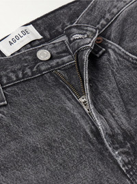 AGOLDE's jeans are crafted with the utmost attention to detail to ensure they'll stand the test of time. This 'Valen' pair is cut from denim in a vintage-inspired dark-gray 'Spirit' wash and have straight legs and subtle fraying along the pockets and cuffs. Size & Fit - Fits true to size, take your normal size - Mid-rise, cut for a straight-leg fit - Mid-weight, non-stretchy denim - Size 26 jeans have an inside leg of 29.1"/ 74cm - Model is 177cm/ 5'10" and is wearing a size 26 Model measurements: - Bust: 79cm/ 31" - Waist: 61cm/ 24" - Hip: 85cm/ 33.5" Details & Care - Dark-gray denim - Button and concealed zip fastening at front - 100% regenerative cotton - Dry clean - Designer wash: Spirit - This product has been made with regenerative cotton, supporting holistic farming practices that increase soil health, improve biodiversity and reduce carbon emissions
