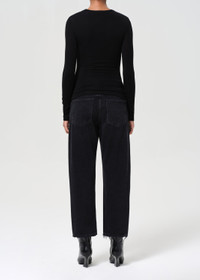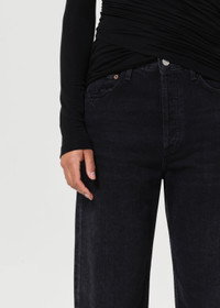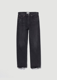 Our best-selling 90's Jean is updated with a cropped inseam, combining vintage-inspired style with a modern twist. The mid-rise fit sits relaxed at the waist, transitioning into a loose, straight leg for a laid-back, effortless silhouette. Made from regenerative cotton in a clean black wash, these jeans offer a timeless, breathable feel with just the right amount of structure. Pair them with a relaxed tee and simple slides for a neutral, casual look, or style with a lightweight knit and minimal sneakers for a clean, understated vibe. For the full-length version, shop the 90's Jeans. This fit is intended to be relaxed. Size down for a higher, closer fit. Looks Like: Washed black denim with very subtle whiskering Feels Like: Rigid, non stretch cotton denim with a soft hand for all day wearability MORE DETAILS Closure: Button Fly Rise: 12 3/4" Inseam: 26" Leg Opening: 16" Model is 5'10" and is wearing a Size 27 Fabric: 100% Organic Cotton Care Instructions: Machine wash cold inside out with like colors. Do not bleach. Tumble dry low. Made in TUR with imported materials A173E-1157_TR