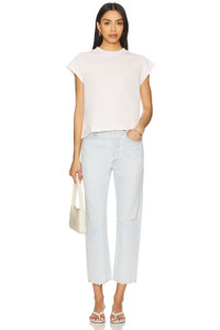 - 67% regenerative cotton 22% lyocell 11% post consumer recycled cotton - Machine wash - Button fly closure.5-pocket styling - Intentional fading and distressing - Cropped styling - Midweight denim fabric.16" at the knee narrows to 14" at the leg opening - Revolve Style No. AGOL-WJ695 - Manufacturer Style No. A173B-1535