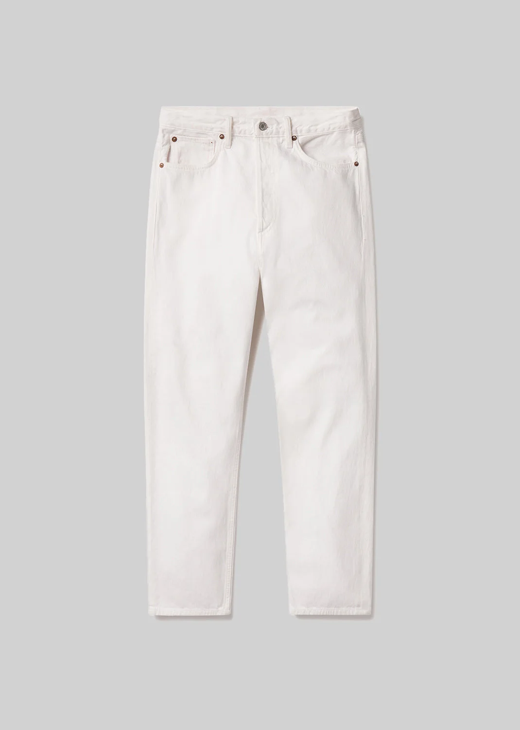 Our best-selling 90's Jean is updated with a cropped inseam, combining vintage-inspired style with a modern twist. The mid-rise fit sits relaxed at the waist, transitioning into a loose, straight leg for a laid-back, effortless silhouette. Made from regenerative cotton in a clean white wash, these jeans offer a timeless, breathable feel with just the right amount of structure. For a chic summer look, pair them with a simple oversized white shirt and slip-on sandals, or style with a lightweight cashmere tank and minimal leather slides for a refined yet relaxed vibe. For the full-length version, shop the 90's Jeans. This fit is intended to be relaxed. Size down for a higher, closer fit. Looks Like: Eggshell warm white clean denim Feels Like: Rigid, non stretch denim made with an authentic, soft hand feel MORE DETAILS Closure: Button Fly Rise: 12 3/4" Inseam: 26" Leg Opening: 16" Model is 5'10" and is wearing a Size 27 Fabric: 100% Organic Cotton Care Instructions: Machine wash cold inside out with like colors. Do not bleach. Tumble dry low. Made in Turkey with imported materials A173C-1183-FRTCO
