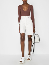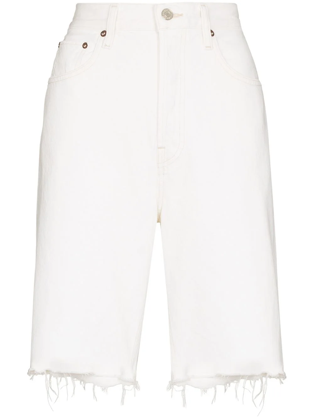 90s Pinch denim shorts Made from denim, AGOLDE's 90s Pinch shorts are part of the brand's AW21 collection and are cut for a knee-length. Sitting high at the waist for an elongating silhouette, they boast a raw cut hem for a casual feel. Imported Composition Cotton 100% SIZE & FIT Model measurements Height 5 ft 9 in(1.76 m) Bust/Chest 33.07 in(84 cm) Hips 38.58 in(98 cm) Waist 24.8 in(63 cm) Measurement HIPS 34.64 in(88 cm) WAIST 24.4 in(62 cm) FittingInformation This piece fits true to size. We recommend you get your regular size Designed to be fitted at the waist and hips, loose over the leg Made with a mid-weight non-stretch fabric Washing instructions Machine Wash