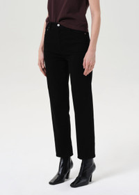 ***Sign to be notified when back-in-stock. Expected to be restocked first week of October*** The 90’s Pinch Waist Crop in Cover revives a vintage-inspired silhouette with a modern, refined edge. Crafted from heavyweight regenerative cotton denim with comfort stretch, this high-rise straight style features a cropped 27.5" inseam and clean overdyed black finish. Soft to the touch and structured to hold shape, it's an everyday essential with all-day wearability. This fit is true to size. Looks Like: Clean overdyed black denim pant Feels Like: Comfort stretch, archive denim with a super soft hand for all day wearability MORE DETAILS Closure: Button Fly Rise: 12" Inseam: 27 1/2" Leg Opening: 15 1/2" Model is 5'10" and is wearing a Size 27 Fabric: 96% Regenerative Cotton, 3% Elastomultiester, 1% Elastane Care Instructions: Machine wash cold inside out with like colors. Do not bleach. Tumble dry low. Made in Turkey with imported materials A215-1274-COVR