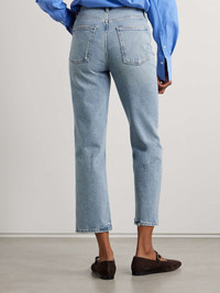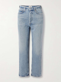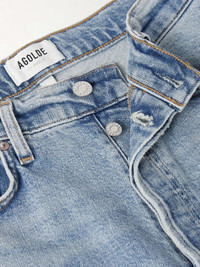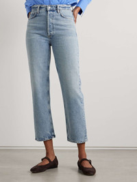AGOLDE's '90s Pinch Waist' jeans look like a prized vintage pair but have been rigorously tested to ensure a great fit. They're cut with a high rise, straight legs and a retro buttoned fly. Wear them with everything from simple tees to chunky sweaters. Size & Fit - Fits true to size, take your normal size - High-rise, cut for a straight-leg fit - Cropped length - Mid-weight, non-stretchy fabric - Size 27 jeans have an inside leg of 26"/ 66cm - Model is 180cm/ 5’11” and is wearing a size 27 Model measurements: - Bust: 80cm/ 31.5" - Waist: 70cm/ 27.5" - Hip: 93cm/ 36.5" Details & Care - Blue denim - Partially concealed button fastenings along front - 99% cotton, 1% elastane - Machine wash - Designer wash: Ripple - This product has been made with regenerative cotton, supporting holistic farming practices that increase soil health, improve biodiversity and reduce carbon emissions