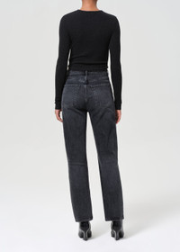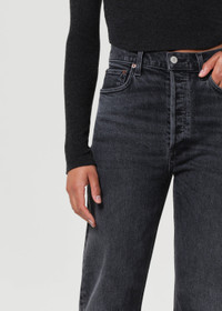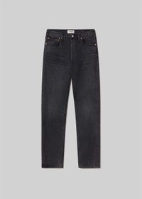 A vintage-inspired fit with a modern feel. The 90’s Pinch Waist features a flattering high-rise waist with a close-fitting top block that hugs through the hips before falling into a classic straight leg. Crafted from black regenerative cotton denim, this pair offers a non-stretch, authentic vintage look. Finished with a full-length inseam, it’s endlessly versatile—style it with anything and everything for effortless, everyday wear. This fit is true to size. Looks Like: Saturated washed black denim with whiskering Feels Like: Rigid, non stretch cotton denim with a soft hand for all day wearability MORE DETAILS Closure: Button Fly Rise: 12 3/4" Inseam: 29 1/2" Leg Opening: 15 1/2" Model is 5'10" and is wearing a Size 27 Fabric: 100% Organic Cotton Care Instructions: Machine wash cold inside out with like colors. Do not bleach. Tumble dry low. Made in Turkey with imported materials A154C-1157-HICH