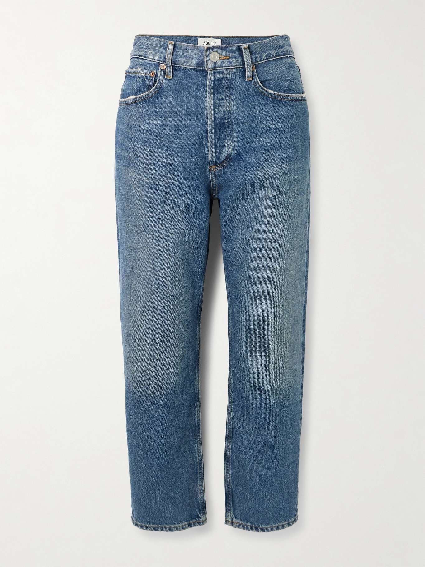 EDITORS'NOTES AGOLDE's aptly named '90s Crop' jeans are washed and whiskered to look like a vintage pair. Made from rigid denim, they’re made with regenerative and recycled cotton and cut with slightly shorter straight legs. Lower-Impact Materials. This product is made using at least 50% lower-impact materials or ingredients. Find out more about our NET SUSTAIN criteria here. SIZE & FIT Model measurements: - Fits true to size, take your normal size - Mid-rise, designed for a straight-leg fit - Cropped length - Mid-weight, non-stretchy denim - Size 26 jeans have an inside leg of 26"/ 66cm - Model is 177cm/ 5'10" and is wearing a size 26 - Bust: 85cm/ 33” - Waist: 66cm/ 26” - Hip: 92cm/ 36” DETAILS & CARE - Blue denim - Partially concealed button fastenings along front - 67% regenerative cotton, 22% Lyocell, 11% recycled cotton - Machine wash - Designer wash: Essence - This product has been made with regenerative cotton, supporting holistic farming practices that increase soil health, improve biodiversity and reduce carbon emissions