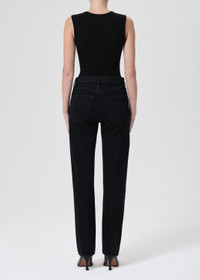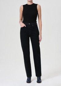 Inspired by two of our best-selling styles. Featuring a flattering high-rise waist with a close-fitting top block through the hips, an easy, classic straight leg - now in a much-requested longer inseam. Style back to anything and everything. Crafted in our Weightless Cotton, this pair will only get softer with each wear while keeping its vintage appeal. This wash is true to size but if you prefer more ease, we suggest sizing up. Looks Like: Deep saturated clean black with finished hems Feels Like: Zero stretch cotton with an authentic denim hand MORE DETAILS Closure: Button Fly Rise: 12" Inseam: 32" Leg Opening: 15 1/2" Model is 5'10" and is wearing a Size 27 Fabric: 100% Cotton Care Instructions: Machine wash cold inside out with like colors. Do not bleach. Tumble dry low. Made in Turkey with imported materials A9187-1604_CRSHD
