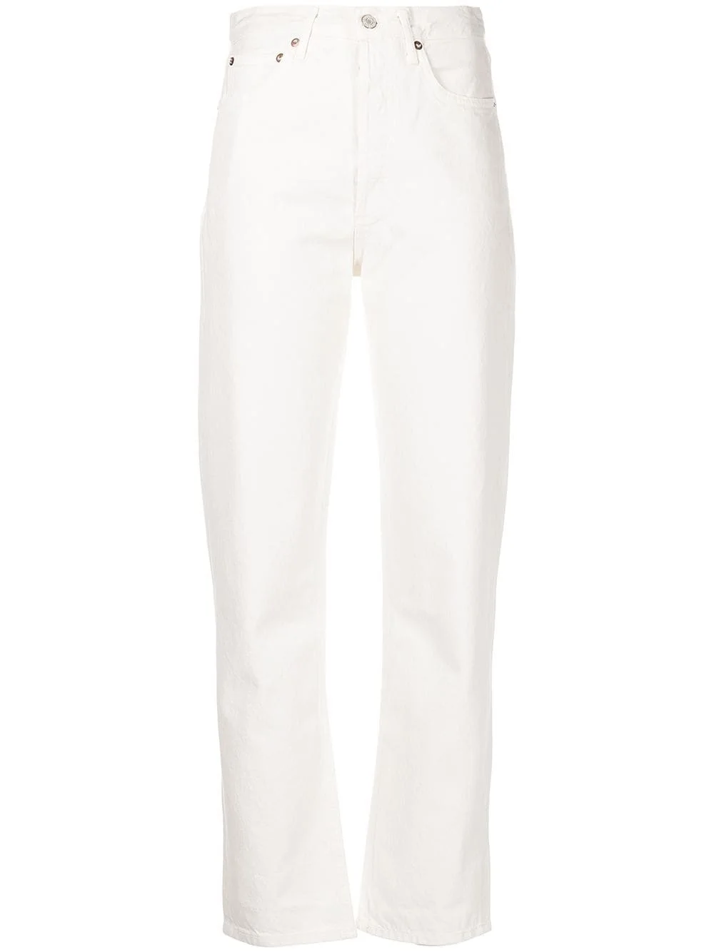 90s Pinch Waist jeans porcelain cotton high waist tapered leg front button fastening belt loops classic five pockets Made in United States Composition Cotton 100% SIZE & FIT Model measurements Height 5 ft 10 in(1.77 m) Bust/Chest 33.85 in(86 cm) Hips 35.03 in(89 cm) Waist 24.01 in(61 cm) FittingInformation This piece fits true to size. We recommend you get your regular size Cut for a relaxed fit Made with a mid-weight fabric