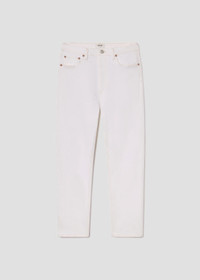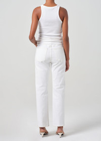 Inspired by two of our best-selling styles. Our iconic 90’s Pinch Waist holds you in - in the best way possible. Featuring a flattering high-rise waist with a close-fitting top block through the hips, an easy, classic straight leg finished with a full-length inseam. Style back to anything and everything. Crafted in our zero stretch Cotton, this pair will only get softer with each wear while keeping its vintage appeal. This wash is true to size but if you prefer more ease, we suggest sizing up. Looks Like: Clean true white with a finished hem Feels Like: Soft, non-stretch cotton with subtle drape for all day wearability MORE DETAILS Closure: Button Fly Rise: 12 3/4" Inseam: 29 1/2" Leg Opening: 15 1/2" Model is 5'10" and is wearing a Size 27 Fabric: 100% Cotton Care Instructions: Machine wash cold inside out with like colors. Do not bleach. Tumble dry low. Made in Turkey with imported materials A154D-1183_MMELO