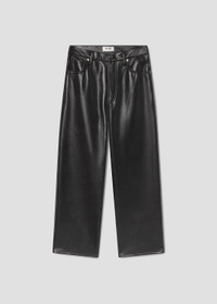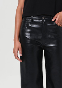 The Ren Jean is designed with a flattering high-rise waist, a relaxed fit through the hips, and finished with a wide leg silhouette. Pair back this Recycled Leather pair back to a sleek tank or bodysuit for the ultimate chic look. This fit is true to size. Looks Like: Luxe black with a matte finish Feels Like: Buttery, genuine recycled leather with some slight stretch for ease MORE DETAILS Closure: Zipper Fly Rise: 12" Inseam: 27 1/2" Leg Opening: 19 1/4" Model is 5'10" and is wearing a Size 27 Fabric: 50% Recycled Leather, 30% Polyurethane, 10% Viscose, 10% Polyester Care Instructions: Dry clean only. Made in USA with imported materials A206-1285-DETOX