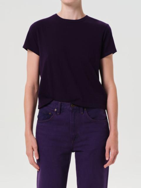 The Adine is a wardrobe essential, crafted from breathable, ultra-soft organic cotton. Perfect for wearing solo or layering, it pairs effortlessly with denim shorts or low-rise jeans for a timeless, flattering look. This fit is true to size. Looks Like: Clean black shrunken tee Feels Like: Lightweight ultra soft jersey cotton MORE DETAILS Body Length: 18 1/4" Chest: 20" Sweep: 14" Shoulder to Shoulder: 24 1/4" Sleeve Length: 22" Model is 5'10" and wearing a size Small Fabric: 100% Organic Cotton Care Instructions: Machine wash cold. Made in USA with imported materials A7180-1507-BLK