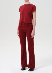 The Adine is a wardrobe essential, crafted from breathable, ultra-soft organic cotton. Ideal for wearing solo or layering, it pairs effortlessly with denim shorts or low-rise jeans, creating a timeless and flattering look. This fit is true to size. Looks Like: Dark saturated red shrunken tee Feels Like: Lightweight ultra soft jersey cotton MORE DETAILS Body Length: 19 3/4" Chest: 37" Sweep: 36 1/2" Shoulder to Shoulder: 15" Sleeve Length: 5 1/4" Model is 5'10" and wearing a size Small Fabric: 100% Organic Cotton Care Instructions: Machine wash cold. Made in USA with imported materials A7180-1507-IRK