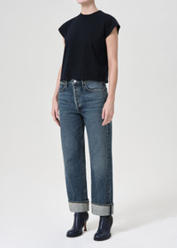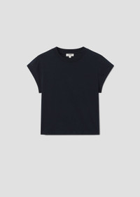 When you need more than just a basic tee—meet the Bryce. Crafted from 100% breathable, ultra-soft cotton, it’s perfect for wearing solo or layering. The angled sleeves add a modern touch, creating a fresh and flattering silhouette that effortlessly elevates any look. This fit is true to size. Looks Like: Dark navy crewneck tee with cap sleeves Feels Like: Lightweight jersey with an easy drape for all day wearability MORE DETAILS Body Length: 21 1/4" Shoulder to Shoulder: 15 1/2" Sleeve Length: 3 1/2" Chest: 38" Sweep: 39" Model is 5'10" and wearing a size Small Fabric: 100% Cotton Care Instructions: Machine wash cold. Made in USA with imported materials A7207-1521_SOM